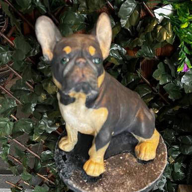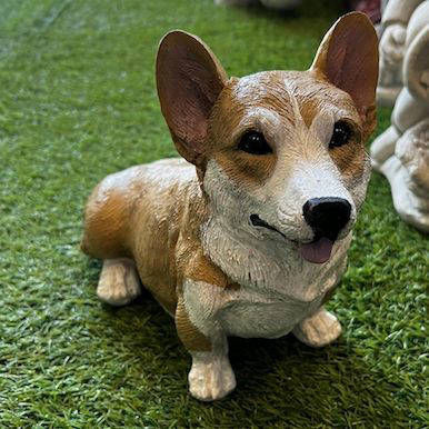 We sell pre-cast cement ornaments and are able to personalise them for you, by painting them to match your pooch. You can choose which dog you'd like off-the-shelf and send us photos of your pet as a guide for us to use (the clearer the photos the better!).